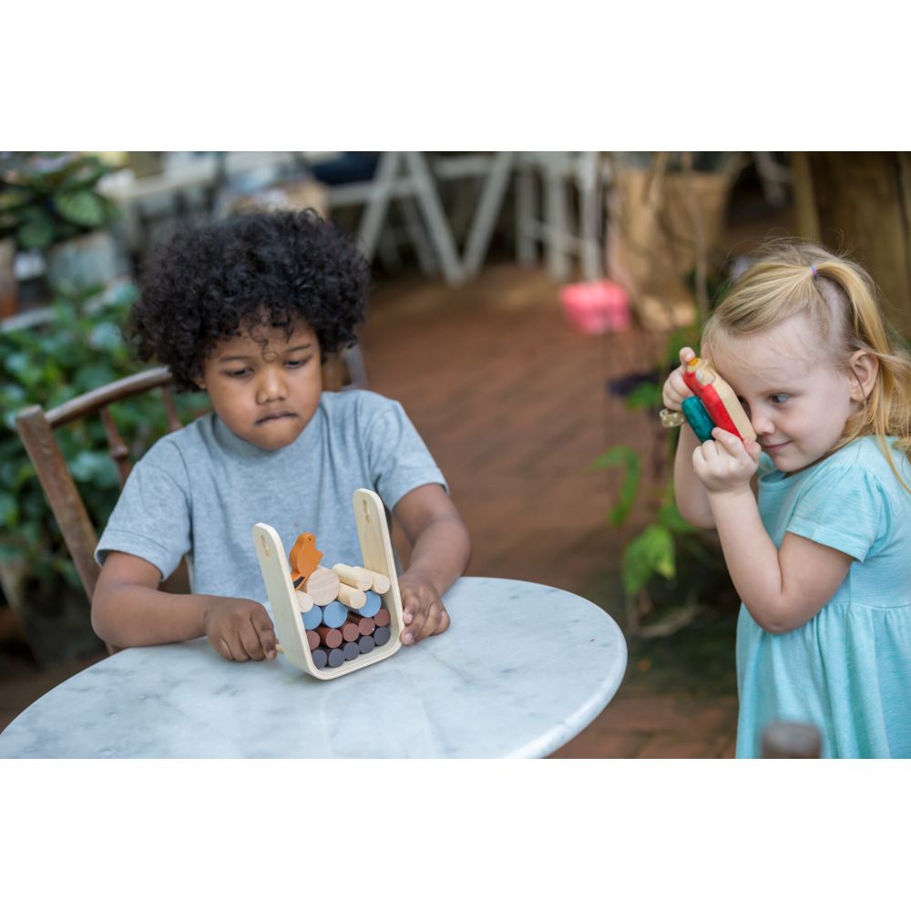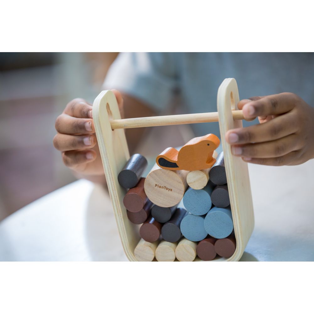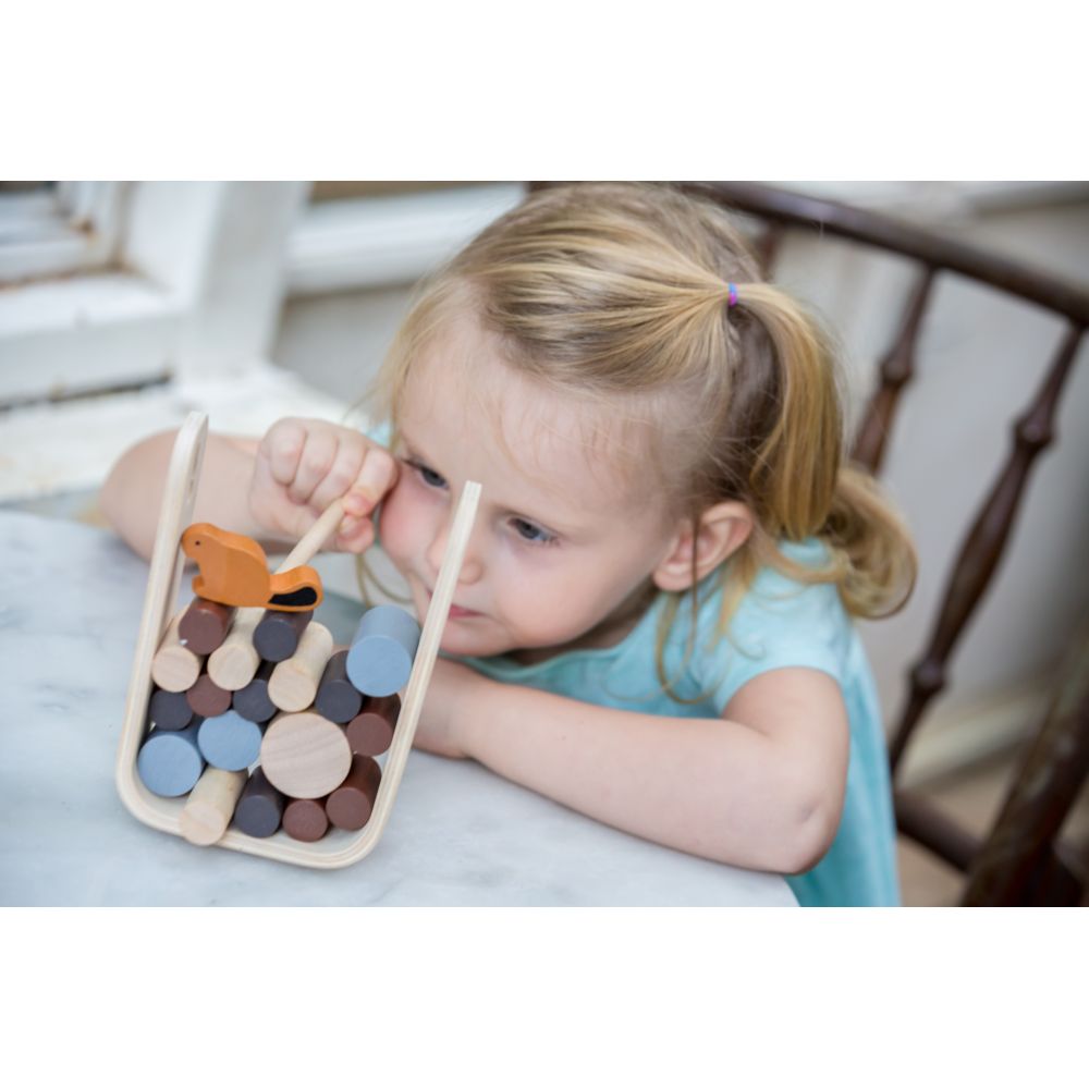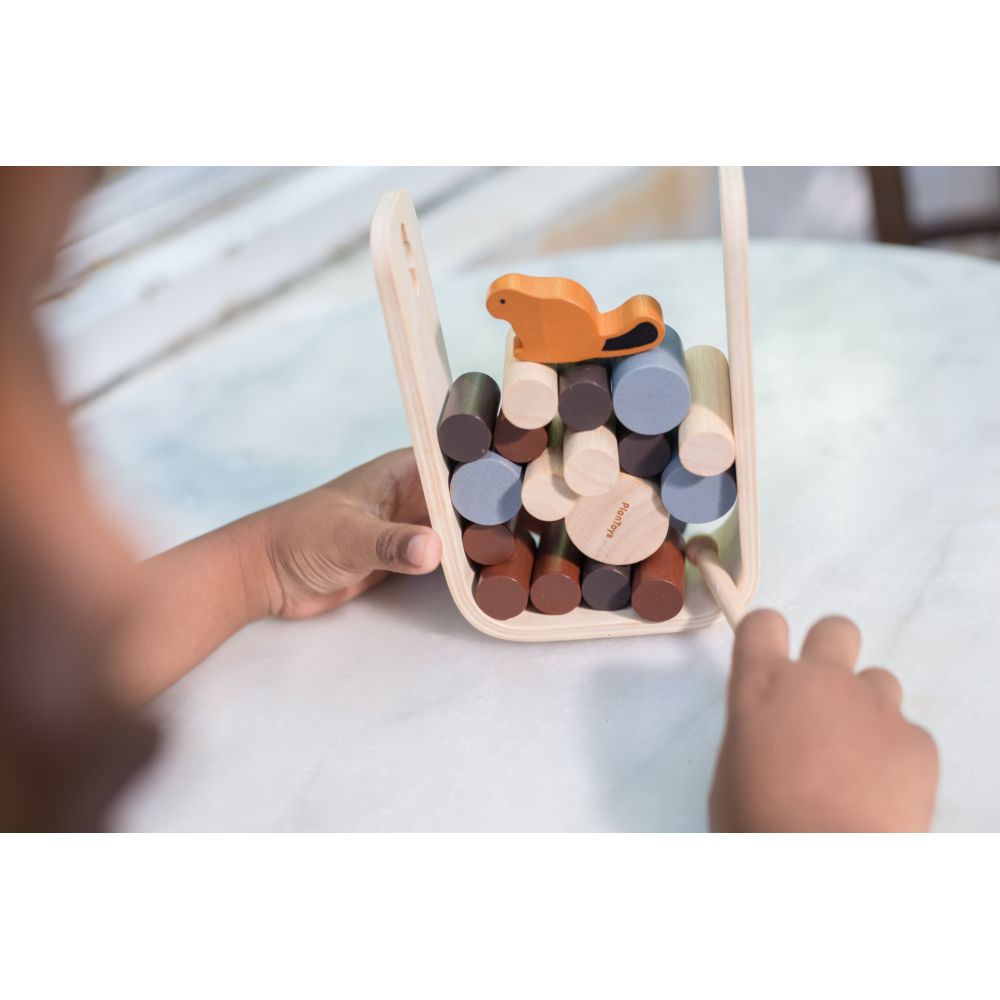 丸太の上のビーバーを救いましょう!ビーバーを落とさずに、スティックを使って丸太を押し出します。順番に行い、ビーバーを救った人が勝者。手と目の協調や戦略的思考を養います。1人〜4人で遊ぶのに最適です。