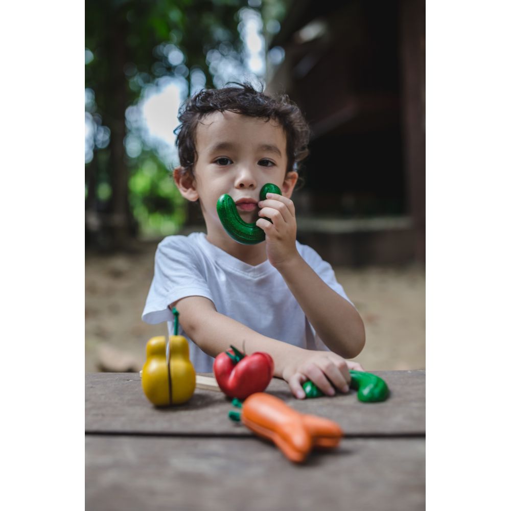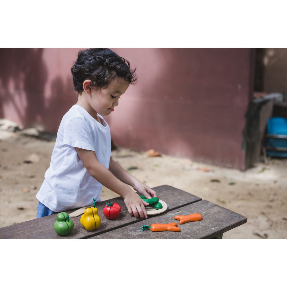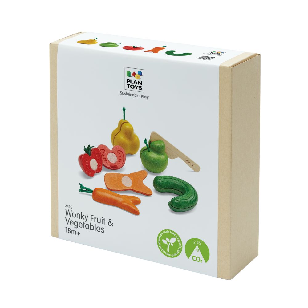 オランダのクロムコメール社とプラントイがコラボし、食料廃棄品を無くそうという運動の一環として、作られました。味には全く問題のない多くの果物や野菜が、ほんの少しの見た目の欠点のために廃棄されています。子どもたちに曲がった野菜の多様性や、食料廃棄について考えてもらうため、敢えていびつな果物と野菜のセットです。