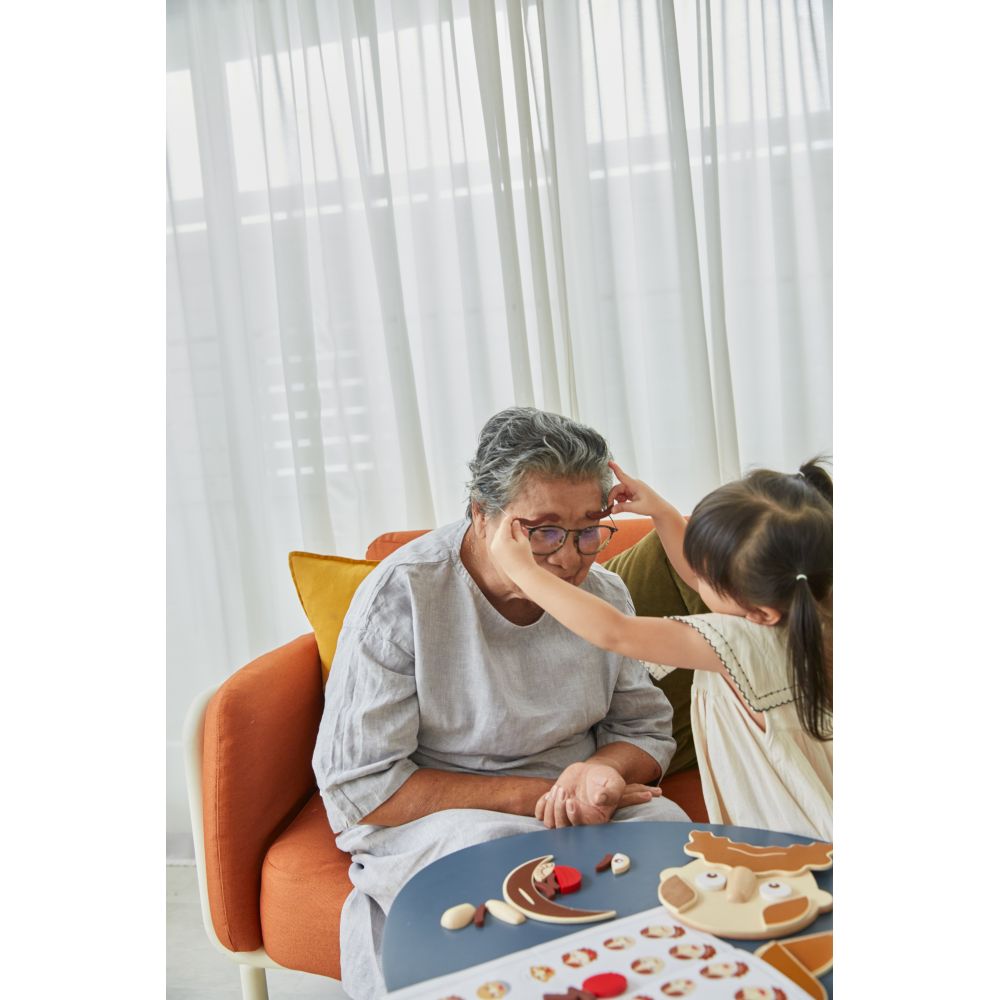 身近な人の顔を思い浮かべたり、自分の感情を表現してみましょう。顔の表情パーツのセットです。ひとりでもグループでも楽しく遊べます。リバーシブルタイプの顔1枚、21個の顔パーツ、収納バッグ付。