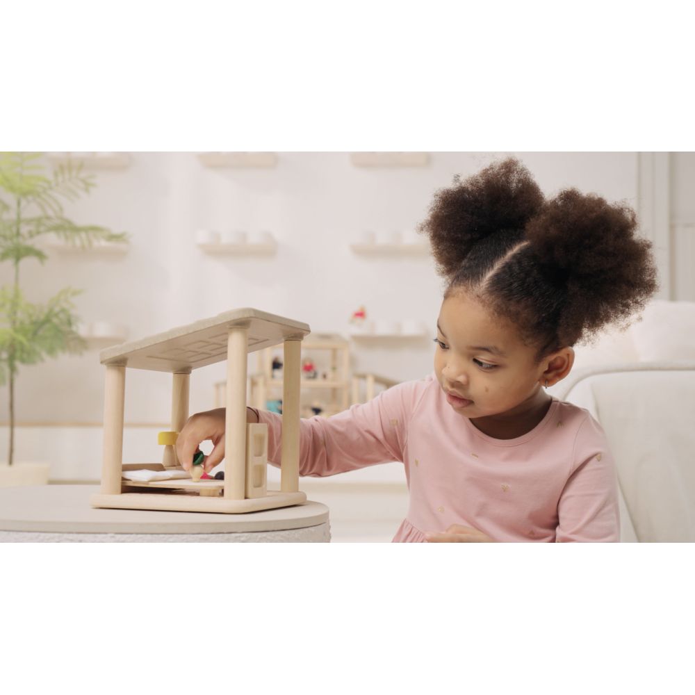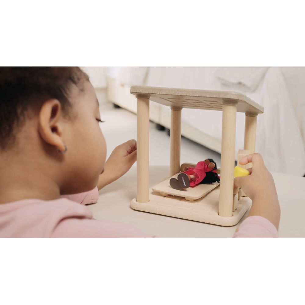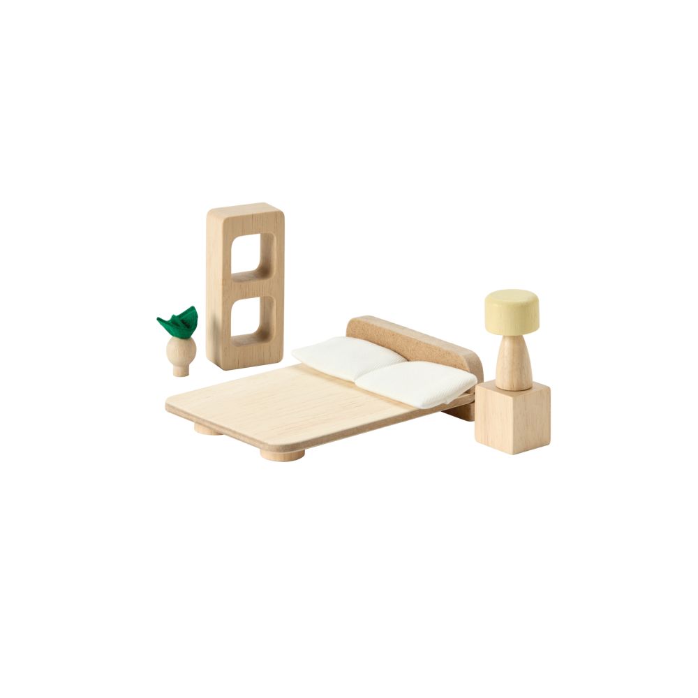 ごっこ遊びのためのモジュール式家具セットで、ベッド、ランプ、シェルフ、ベッドサイドテーブル、鉢植え、枕が2つ付いています。他のプラン・スペースシリーズを積み重ねったり横に並べたりすることで遊びの幅を広げることができます。
