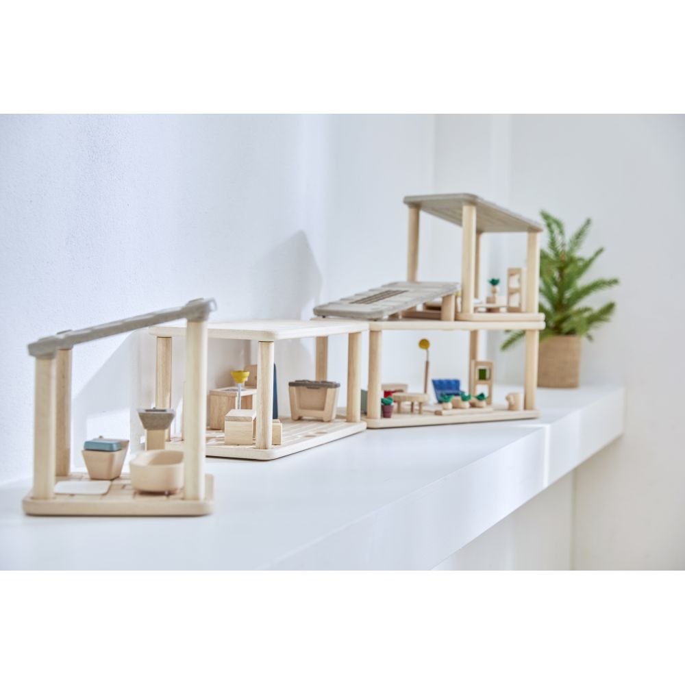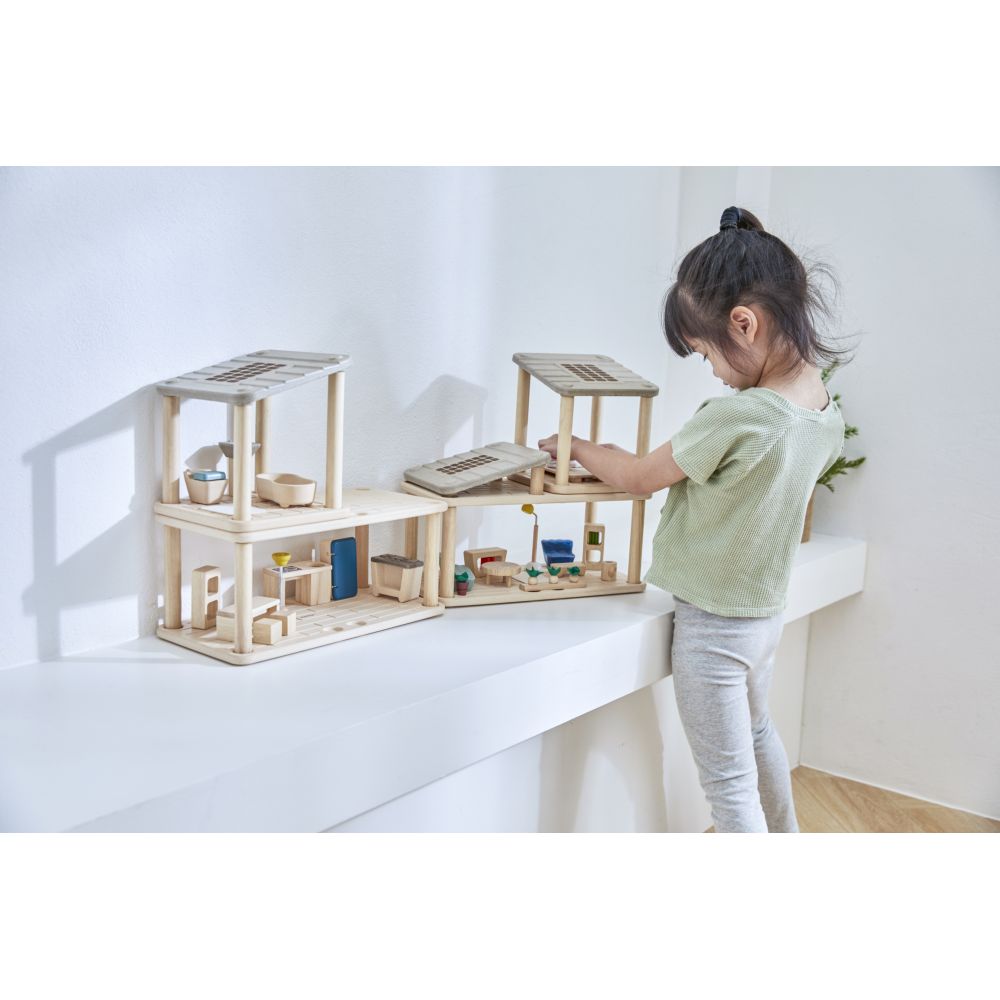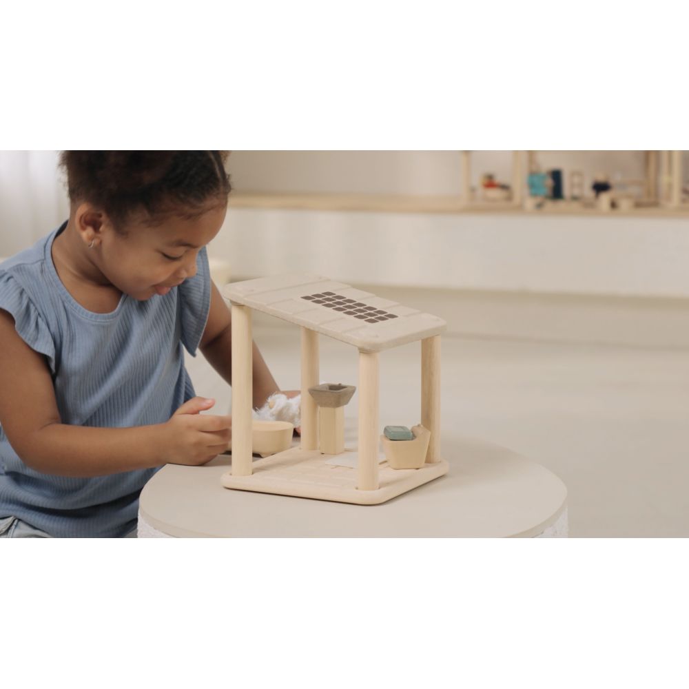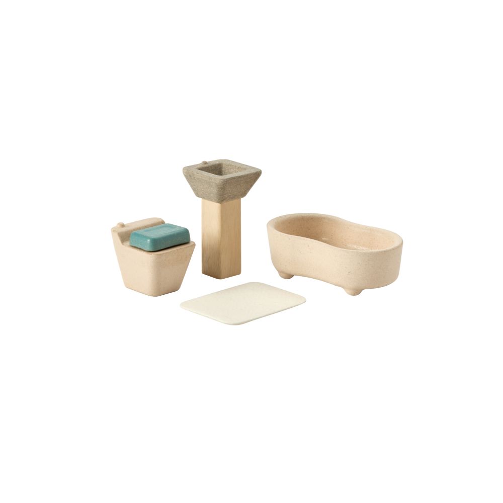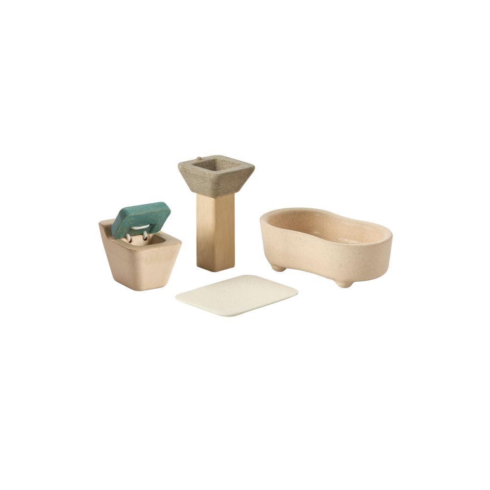 ごっこ遊びのためのモジュール式家具セットで、トイレ、バスタブ、シンク、マットが付いています。他のプラン・スペースシリーズを積み重ねったり横に並べたりすることで遊びの幅を広げることができます。
